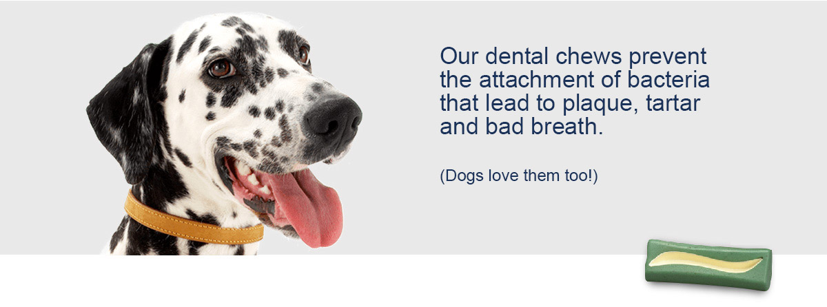 devider Released throughout the mouth as soon as your dog starts chewing devider Forms a protective barrier devider Reduces the formation of plaque and tartar devider Reduces bad breath