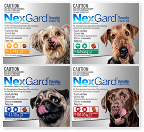 NexGard can be used in all dogs from 8 weeks of age and greater than 2 kg, and is available in both 3 and 6 month packs. With 4 convenient weight ranges, there is a NexGard parasite solution for small, medium, large and even very large dogs.
